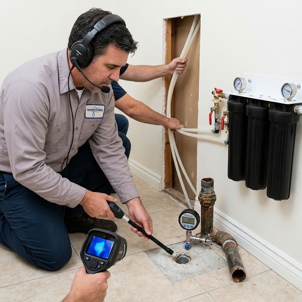 We begin every slab leak repair with a comprehensive on-site inspection that combines visual assessment, pressure testing, and advanced leak detection technology. Our goal is clear diagnosis before any invasive work begins.