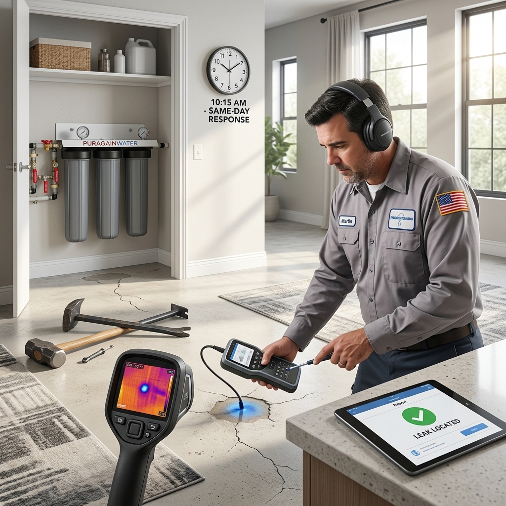Our same-day promise means you won’t spend sleepless nights wondering if water is silently damaging your home. We’ll be there, diagnose the leak, and explain your repair options before the sun rises.